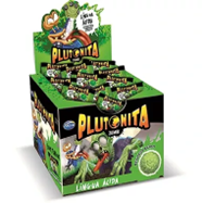 Chiclete Recheio Efervescente Uva e Maçã Baba de Bruxa Plutonita Caixa 180g 36 UnidadesDisplay de Chicle Plutonita Cabeça de Abóbora 180gDisplay de Chicle Plutonita Língua Ácida 180g (40 un/cada)