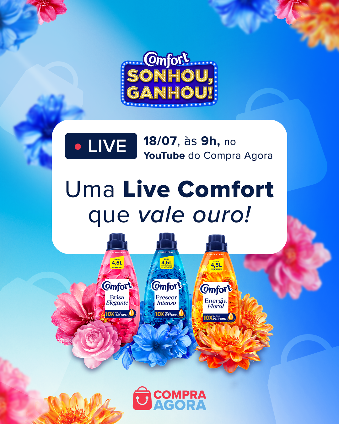 A live de Comfort com o Compra Agora aconteceu no dia 18 de julho e foi um verdadeiro sucesso! Durante a transmissão, foram reveladas oportunidades valiosas para o varejo vender mais com o portfólio de Comfort, além do lançamento da nova promoção da marca, que promete movimentar as gôndolas nos próximos meses.